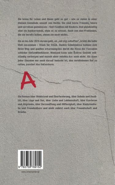 Die Handlung umfasst zeitlich etwas mehr als vier Monate zwischen Ende August 2015 und Anfang Januar 2016. Die Flüchtlingswelle in Deutschland erreicht ihren Höhepunkt und die Stimmung im Land kippt, so auch in einer 5.000-Einwohner-Gemeinde mit ihren gutsituierten Bewohnern im Berliner Speckgürtel. Fünf dort lebende Familien sind eng befreundet, so scheint es zumindest. In ihrer Beziehung untereinander geht es aber nicht nur um gemeinsame Erlebnisse und Feiern. Die Welt dreht sich um Konsum, um das Mithalten- und Übertreffen-Wollen und um die Pflege der eigenen Perfektion in der öffentlichen Wahrnehmung.Die Ankündigung des Baus einer Flüchtlingsunterkunft an prominenter Stelle führt innerhalb des Ortes und des Freundeskreises schließlich zur Spaltung. Die einen beschwören die Gefahren durch muslimischen Zuzug herauf, die anderen gründen voller Elan eine Flüchtlingsinitiative.Durch die Ausnahmesituation des Jahres 2015, denen sich der Ort, seine Institutionen und Bewohner stellenmüssen, geraten übliche Gepflogenheiten, die dörfliches Leben ausmachen, ins Wanken. Die dunklen Geheimnisse der Protagonisten kommen durch unerwartete, emotionsgeladene Situationen erst schemenhaft und dann immer klarer ans Licht. Jedes einzelne Mitglied des Freundeskreises hat in dieser Krise so sehr mit sich selbst zu tun, dass Respekt und Empathie nahezu vollständig auf der Strecke bleiben. Keiner sieht das Unheil kommen, obwohl es sich zunächst leise, dann immer sichtbarer andeutet. Und irgendwann ist es zu spät.