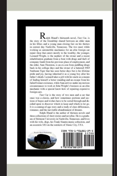Ralph Bland's thirteenth novel, Fast Car, is the story of the friendship shared between an older man in his fifties and a young man closing fast on his thirties in current day Nashville, Tennessee. The two meet while working as automobile mechanics for an elite foreign car repair shop that caters mostly to the wealthy; the younger, Leonard Wright, is the nephew of the owner and a recent rehabilitation graduate from a bout with drugs and theft of company funds from his previous place of employment, and the elder, Sam Thornton, is an ex-con from peddling drugs back in his college days and the owner of a battered 1965 Sunbeam Tiger that has seen better days but is his lifetime pride and joy, having inherited it as a young boy after his father's death. Leonard takes a job with his uncle as a means of finding himself a better standing and an escape from his failed former existence, while Sam arrives under mysterious circumstances to work at John Wright's business as an elite mechanic with a special know-how of repairing expensive foreign cars.Fast Car is the story of two men and a car that once was a classic, and how sometimes portions and sections of hopes and wishes have to be sorted through and decided upon to discover which to keep and which to let go. It is a coming-of-age story and a study of class differences, romance, and the inevitable abandonment of dreams.Ralph Bland is the author of thirteen novels and three collections of short stories and novellas. He is a graduate of Belmont University in Nashville, Tennessee, and lives with his wife, dogs, his Frank Sinatra music collection, and an eccentric MG on the outskirts of Music City, USA.