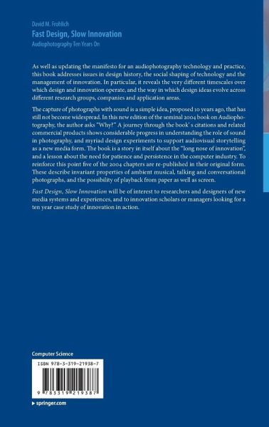 As well as updating the manifesto for an audio photography technology and practice, this book addresses issues in design history, the social shaping of technology and the management of innovation. In particular, it reveals the very different timescales over which design and innovation operate, and the way in which design ideas evolve across different research groups, companies and application areas.