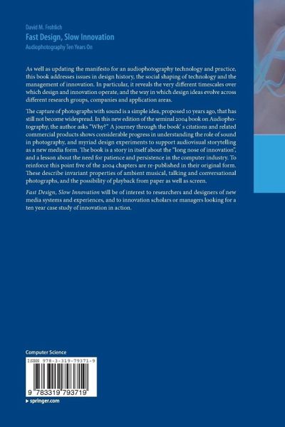 As well as updating the manifesto for an audio photography technology and practice, this book addresses issues in design history, the social shaping of technology and the management of innovation. In particular, it reveals the very different timescales over which design and innovation operate, and the way in which design ideas evolve across different research groups, companies and application areas.