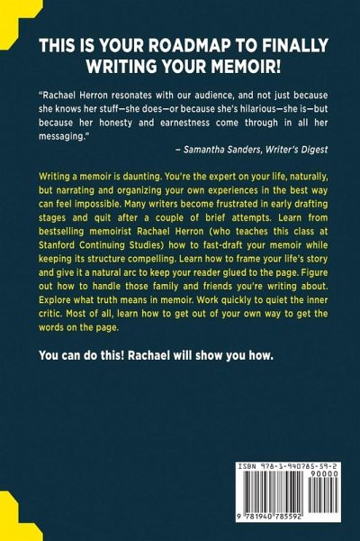 The roadmap for completing the memoir you've dreamed about writing. Now available as a workbook! Where Rachael will guide you through all the little writing trip ups that prevent you from completing your book. This is a companion to Fast-Draft Your Memoir, and is to be used alongside the full-length book. The workbook has all new material, but it does not include original text from the non-workbook version which is needed to use this workbook. "Rachael Herron resonates with our audience, and not just because she knows her stuff-she does-or because she's hilarious-she is-but because her honesty and earnestness come through in all her messaging." -Samantha Sanders, Writer's Digest Writing memoir is daunting! You're the expert on your life, naturally, but narrating and organizing your own experiences in the best way can feel impossible. Many writers become frustrated in early drafting stages and quit after a couple of brief attempts. Learn from bestselling memoirist Rachael Herron (who teaches this class at Stanford Continuing Studies) how to fast-draft your memoir while keeping its structure compelling. Learn how to frame your life's story and give it a natural arc to keep your reader glued to the page. Figure out how to handle those family and friends you're writing about. Explore what truth means in memoir. Work quickly to quiet the inner critic. Most of all, learn how to get out of your own way to get the words on the page.¿