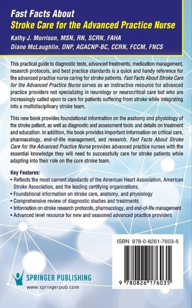 A practical guide to diagnostic tests, advanced treatments, medication management, research protocols, and best practice standards. This is a quick and handy reference for the advanced practice nurse caring for stroke patients.