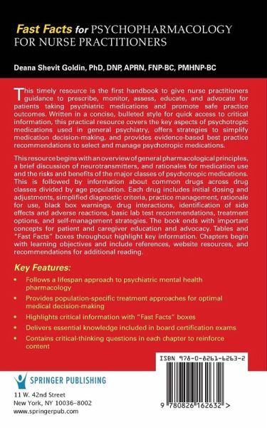 "Fast Facts for Psychopharmacology for Nurse Practitioners is the first practical guide for novice and experienced nurse practitioners in explaining and choosing appropriate psychiatric medications. This clinical reference is ideal for students and all clinically oriented health care professionals since it provides a concise, bulleted style text for easy access to pertinent information. This book offers readers a broad understanding of the key aspects of psychotropic medications used in general psychiatry and primary care settings and includes strategies to ease medication decision-making and evidence based best practices to select and manage psychotropic medications."--
