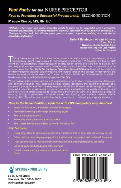 This quick-access guide for novice nurse preceptors walks through, step-by-step, how to successfully orient new nurses to the hospital environment. Preceptors are key to staff retention, job satisfaction, improved quality of care, patient safety and transition to practice. For the busy novice nurse preceptor who believes they do not have the time or preparation to be a nurse preceptor, Fast Facts for the Nurse Preceptor, Second Edition explains all the requisites for demonstrating, guiding, and mentoring new nurses through the process of delivering safe, evidence-based, patient-centered care. The second edition builds upon the foundation of the first to address more complicated challenges preceptors face. While reviewing the basics like shift organization, prioritization, communication, delegation, and conflict resolution, this orientation guide delineates the essential qualities of a competent preceptor and their primary responsibilities. It discusses the knowledge and skills a successful preceptor must impart to new nurses while acclimating to a variety of teaching and learning styles. Chapters discuss how to recognize the warning signs of a struggling preceptee, work through a preceptee's "transition shock," and help new nurses to develop critical thinking skills. Abundant case studies highlight common and challenging precepting situations. New to the Second Edition: Updated with FIVE completely new chapters: Selection, Education, and Retention of the Preceptor Preceptee Learning and Preceptor Teaching Styles The Challenging Student Precepting the Accelerated BSN and Advanced Practice Nurse (APRN) The Unsafe Preceptee and How to Avoid "Failure to Fail" Key Features: Helps preceptors to serve as excellent role models, mentors, and teachers for new nurses Offers quick-access, step-by-stop guidance with short paragraphs and bulleted information Uses case studies to highlight both common and challenging precepting scenarios Includes evidence-based content throughout Contains competency assessment and evaluation forms