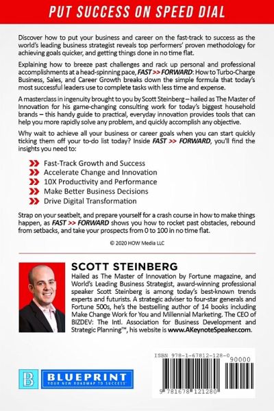 Discover how to put your business and career on the fast-track to success as the world's leading business strategist reveals top performers' proven methodology for achieving goals quicker, and getting things done in no time flat. Explaining how to breeze past challenges and rack up accomplishments at a head-spinning pace, FAST > FORWARD breaks down the simple formula that today's market leaders use to complete tasks with less time and expense. A masterclass in ingenuity brought to you by renowned futurist Scott Steinberg - hailed as the Master of Innovation - this handy guide to practical, everyday innovation can help you: - Fast-Track Growth + Success - Accelerate Change + Innovation - 10X Productivity + Performance - Make Better Business Decisions - Drive Digital Transformation Strap on your seatbelt, and prepare yourself for a crash course in how to make things happen, as FAST > FORWARD reveals how to rocket past obstacles and take your prospects from 0 to 100 in no time flat.