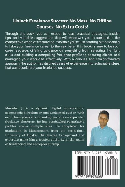 You are just a few pages away from finding the freedom you have been inadvertently looking for! Maybe it's high time for you to break free from the old concept of working now and living later. Stop dragging yourself away from your home at 9 am and bringing yourself back at 5 pm, just to repeat the process every day. Imagine, having the flexibility to work whenever, wherever, with whomever you desire, while you become financially secure. And embracing a life you never thought possible! A quick internet search of the phrase "work from home" yields over 17 billion results on Google. However, the challenge lies in uncovering your dream job within this vast sea of opportunities. Let the 'Fast-Track Guide to Remote Work' do the heavy lifting for you. The author (Muradut J.), drawing from his own freelance career, shares genuine knowledge, true experiences, and valuable insights. This guide is designed to equip you with practical strategies, insider tips, and inestimable advice that will empower you to thrive in the competitive world of freelancing. Unlike other books that merely offer generic tips and tricks for finding remote work, this book goes above and beyond by:Providing you with free tools, resources, and comprehensive guidelines to quickly kickstart your work-from-home journey. Unveiling high-paying skills that guarantee a consistent stream of income, giving you financial stability. Showing you effective ways to build an impressive freelance profile and a cover letter that stands out from the crowd. Exploring the Gig Economy, projects, and legitimate freelance platforms that open doors to endless opportunities. Offering insights on how to secure your first-ever remote job and continually expand your prospects. So, are you ready to escape the daily grind of traffic and the huge amount of debt you have? Do you really want to accumulate the capital that has refrained you from embarking on your next offline business venture? Seize your true freedom today! Get your copy now!