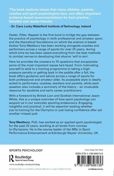 Faster, Fitter, Happier is the first book to bridge the gap between the practice of psychology across both professional and amateur sport, and the theoretical foundations on which the science is based. Author Tony Westbury has been working alongside coaches and performers across a range of sports for over 25 years, during which time he has been asked everything from the best methods to combat nerves to developing that elusive 'will to win'. Here he provides the answers to 75 questions that encapsulate some of the most important issues he's faced. From motivating yourself to stick to a training programme to taking a high-pressure penalty or getting back in the saddle after a fall, the book offers guidance and advice across a range of sports for both professional and amateur alike. Its accessible style is ideally suited to performers, coaches, teachers and parents, while each question also includes a summary of the theory - an invaluable resource for students and early career practitioners. With a foreword by British Lion and Scottish International Jason White, this is a unique overview of how sport psychology can support us in our everyday sporting endeavours. Engaging, insightful and practical, it will be essential reading whether you're training for the Olympics or just losing confidence after yet another missed putt.