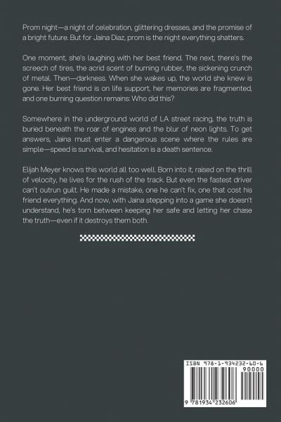Prom night-a night of celebration, glittering dresses, and the promise of a bright future. But for Jaina Diaz, prom is the night everything shatters. One moment, she's laughing with her best friend. The next, there's the screech of tires, the acrid scent of burning rubber, the sickening crunch of metal. Then-darkness. When she wakes up, the world she knew is gone. Her best friend is on life support, her memories are fragmented, and one burning question remains: Who did this? Somewhere in the underground world of LA street racing, the truth is buried beneath the roar of engines and the blur of neon lights. To get answers, Jaina must enter a dangerous scene where the rules are simple-speed is survival, and hesitation is a death sentence. Elijah Meyer knows this world all too well. Born into it, raised on the thrill of velocity, he lives for the rush of the track. But even the fastest driver can't outrun guilt. He made a mistake, one he can't fix, one that cost his friend everything. And now, with Jaina stepping into a game she doesn't understand, he's torn between keeping her safe and letting her chase the truth-even if it destroys them both. As Jaina and Elijah's paths collide, the lines between revenge, justice, and obsession blur. Secrets unravel. Loyalties are tested. And when engines roar and tires screech, one misstep could mean more than just a broken heart-it could mean the end. A pulse-pounding, high-speed thriller filled with danger, mystery, and a love that burns just as fast as the cars on the street. If you crave adrenaline-fueled suspense and high-stakes romance, this is the ride you don't want to miss.