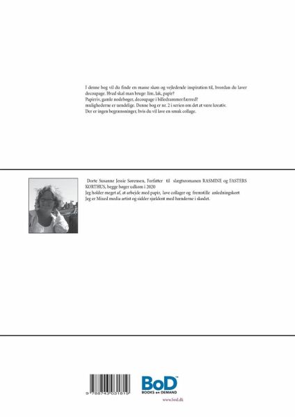 I denne bog vil du finde en masse skøn og vejledende inspiration til, hvordan du laver decoupage. Hvad skal man bruge: lim, lak, papir? papir riv, gamle nodebøger, decoupage i billedrammer/lærred? mulighederne er uendelige. Denne bog er nr. 2 i serien om det at være kreativ. Der er ingen begrænsninger, hvis du vil lave en smuk collage.