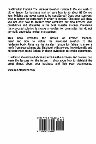 FastTrack© Finding The Winning Solution Edition 2: Do you wish to bid or tender for business and not sure how to go about it? Do you keep bidding and never seem to be considered? Does your company wish to tender for extra work in order to expand? This book will show you not only how to prepare your company, but also present your capabilities and strengths in the best possible manner. Preparing the proposed solution is always a problem for companies that do not normally undertake project management. This book provides the basics of project management and how to define the proposed solution to the tendering body. Risks are the greatest reason for failure to make a profit from your winning bid. We will show you how to identify and mitigate risks found lurking in those invitations to tender documents. We will also show you what can go wrong with a proposal and how you can learn the lessons for the future. We show you how to highlight the great things about your business and hide your weaknesses. www.Bid-Manager.com