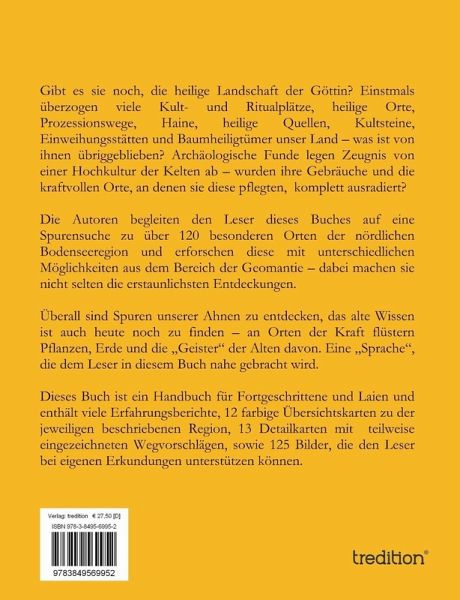 Die Autoren begleiten den Leser dieses Buches auf eine Spurensuche zu über 120 besonderen Orten der nördlichen Bodenseeregion und erforschen diese mit unterschiedlichen Möglichkeiten aus dem Bereich der Geomantie - dabei machen sie nicht selten die erstaunlichsten Entdeckungen.Überall sind Spuren unserer Ahnen zu entdecken, das alte Wissen ist auch heute noch zu finden - an Orten der Kraft flüstern Pflanzen, Erde und die "Geister" der Alten davon. Eine "Sprache", die dem Leser in diesem Buch nahe gebracht wird. Dieses Buch ist ein Handbuch für Fortgeschrittene und Laien und enthält viele Erfahrungsberichte, 12 farbige Übersichtskarten zu der jeweiligen beschriebenen Region, 13 Detailkarten mit teilweise eingezeichneten Wegvorschlägen, sowie 125 Bilder, die den Leser bei eigenen Erkundungen unterstützen können.