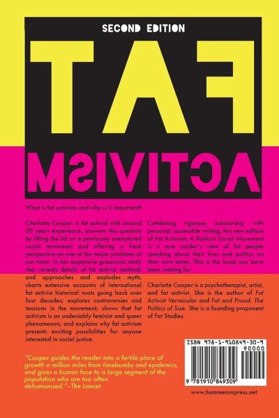 In this new edition of her accessible autoethnography of fat feminist activism in the West, Charlotte Cooper revisits and discusses her activism in the context of recent shifts in the movement. It is part of a new wave of accessible, accountable and rigorous work emerging through Research Justice and the Para-Academy.