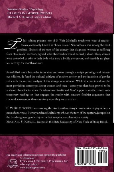 This volume presents one of Mitchell's touchstone texts of neurasthenia-cultural critique as medical diagnosis. Fat and Blood was a best seller in its time and went through multiple printings and numerous editions. It fused the cultural critique of modern society and the inversion of gender roles with the medical analysis of this strange new ailment. Today we are likely to read it angrily, as it serves to enforce the most pernicious stereotypes about women (and not so incidentally, about men)-stereotypes that have proved resilient obstacles to women's advancement. But Fat and Blood supports another reading, a bit more contemporary and certainly more engaged. There are constant arguments that resound across more than the century since they were written.