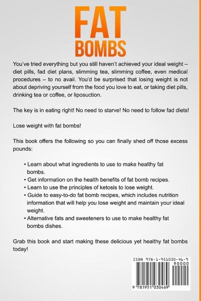 You've tried everything but you still haven't achieved your ideal weight - diet pills, fad diet plans, slimming tea, slimming coffee, even medical procedures - to no avail. You'd be surprised that losing weight is not about depriving yourself from the food you love to eat, or taking diet pills, drinking tea or coffee, or liposuction. The key is in eating right! No need to starve! No need to follow fad diets! Lose weight with fat bombs! This book offers the following so you can finally shed off those excess pounds: Learn about what ingredients to use to make healthy fat bombs. Get information on the health benefits of fat bomb recipes. Learn to use the principles of ketosis to lose weight. Guide to easy-to-do fat bomb recipes, which includes nutrition information that will help you lose weight and maintain your ideal weight. Alternative fats and sweeteners to use to make healthy fat bombs dishes. Grab this book and start making these delicious yet healthy fat bombs today!