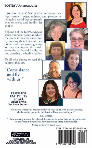 The Fat Poets' Society writes about their joys, sorrows, anger, sadness, and pleasure at living in a world that constantly tries to reject and inhibit fat people. Volume 3 of the Fat Poets Speak series comprises poems in which the poets alternately dance and fly, moving their feet and their bodies and then growing wings as they encompass the earth, above the earth, and finally, the sky, breaking the bodily barrier. To all who choose to read this volume, they say, "Come dance and fly with us." The Fat Poets' Society began at a writing workshop at the 2006 convention of the National Association to Advance Fat Acceptance (NAAFA). The first volume in the series, Fat Poets Speak: Voices of the Fat Poets' Society was published by Pearlsong Press in May 2009 and praised as groundbreaking.