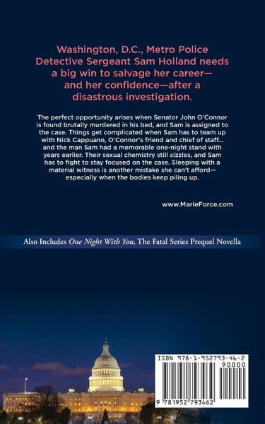 Washington, D.C., Metro Police Detective Sergeant Sam Holland needs a big win to salvage her career-and her confidence-after a disastrous investigation. The perfect opportunity arises when Senator John O'Connor is found brutally murdered in his bed, and Sam is assigned to the case. Things get complicated when Sam has to team up with Nick Cappuano, O'Connor's friend and chief of staff...and the man Sam had a memorable one-night stand with years earlier. Their sexual chemistry still sizzles, and Sam has to fight to stay focused on the case. Sleeping with a material witness is another mistake she can't afford-especially when the bodies keep piling up. Includes the Fatal Series prequel novella, One Night With You.