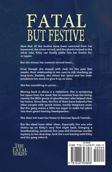 A hilarious, blood-chilling, romantic holiday-mystery! Her house is no longer a crime scene... Now that all the bodies have been removed from her basement, the crime solved, and the ghosts helped to the other side, Kiley can finally settle into her Gothic fixer-upper. But she misses her nemesis-turned-lover... Even though she stayed with Jack for the past few weeks, their relationship is too new to risk shacking up long-term. Besides, she values her space and her independence too much to give it up so soon. She has something to prove... Moving back in alone is a statement. She is reclaiming her space from the dead. Not to mention from the living, namely the little group of ghostbusters who helped clear her house. Since then, the five of them have helped a few other people with spook issues, mostly imaginary ones. But the gang seems a little too eager to make her place into their ghost hunting Headquarters. She does not want her home to become Spook Central... But the dead have other ideas. Especially the one who shows up on Kiley's very first night back, bringing a heartbreaking, unsolved, five-year-old Christmas murder mystery to her doorstep. And she's not leaving until Kiley and the gang solve it.