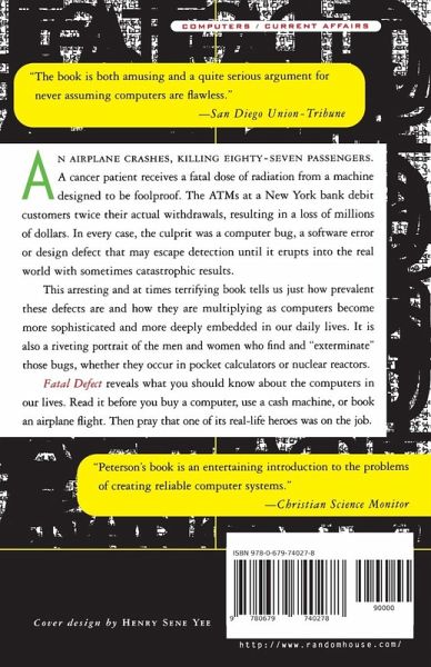 An airplane crashes, killing eighty-seven passengers. A cancer patient receives a fatal dose of radiation from a machine designed to be foolproof. The ATMs at a New York bank debit customers twice their actual withdrawals, resulting in a loss of millions of dollars. In every case, the culprit was a computer bug, a software error or design defect that may escape detection until it erupts into the real world with sometimes catastrophic results. This arresting and at times terrifying book tells us just how prevalent these defects are and how they are multiplying as computers become more sophisticated and more deeply embedded in our daily lives. It is also a riveting portrait of the men and women who find and "exterminate" those bugs, whether they occur in pocket calculators or nuclear reactors. Fatal Defect reveals what you should know about the computers in our lives. Read it before you buy a computer, use a cash machine, or book an airplane flight. Then pray that one of its real-life heroes was on the job.