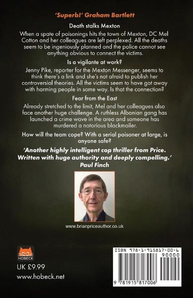 Death stalks Mexton When a spate of poisonings hits the town of Mexton, DC Mel Cotton and her colleagues are left perplexed. All the deaths seem to be ingeniously planned and the police cannot see anything obvious to connect the victims. Is a vigilante at work? Jenny Pike, reporter for the Mexton Messenger, seems to think there's a link and she's not afraid to publish her controversial theories. All the victims seem to have got away with harming people in some way. Is that the connection? Fear from the East Already stretched to the limit, Mel and her colleagues also face another huge challenge. A ruthless Albanian gang has launched a crime wave in the area and someone has murdered a notorious blackmailer. How will the team cope? With a serial poisoner at large, is anyone safe?