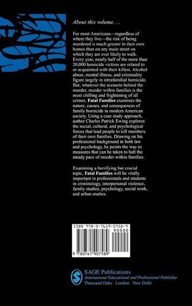 Every year, nearly half of the more than 20,000 murder victims in the United States are related to or acquainted with their killers. Fatal Families explores the social, cultural and psychological forces, as well as the nature and consequences that lead people to kill members of their own families. Drawing on his professional background in law and psychology, and using case studies, Charles Patrick Ewing points the way to measures that can be taken to reduce the terrifying number of murders within families.