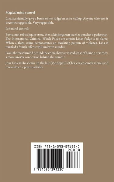 Magical mind control Lina accidentally gave a batch of her fudge an extra wallop. Anyone who eats it becomes suggestible. Very suggestible. Is it mind control? First a nun robs a liquor store, then a kindergarten teacher punches a pedestrian. The International Criminal Witch Police are certain Lina's fudge is to blame. When a third crime demonstrates an escalating pattern of violence, Lina is terrified a fourth offense will end with murder. Does the mastermind behind the crimes have a twisted sense of humor, or is there a more sinister connection behind the crimes? Join Lina as she cleans up the last (she hopes!) of her cursed candy messes and tracks down a potential killer.