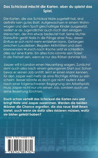 Das Schicksal mischt die Karten, aber du spielst das Spiel.Die Karten, die das Schicksal Nate zugeteilt hat, sind definitiv kein gutes Blatt. Aufgewachsen in einem Wohnwagen und dem Spott gleichaltriger Kinder ausgesetzt, verliert er als Jugendlicher auch noch den einzigen Menschen, der ihm etwas bedeutet hat: Seine Mutter. Daraufhin gerät Nate in die Fänge einer Frau, deren Einfluss er sich nicht mehr entziehen kann. Gefangen zwischen Luxusleben, illegalen Aktivitäten und dem brennenden Wunsch nach Rache setzt er schließlich alles auf eine Karte: Ein altes Foto könnte sein Ticket in die Freiheit sein, wenn er nur das Rätsel dahinter löst.Jasper will in London einen Neuanfang wagen. Zunächst sieht auch alles nach einem gelungenen Start aus: Schon bevor er seinen Job antritt, lernt er einen Mann kennen, für den Jasper weit mehr als eine flüchtige Affäre zu sein scheint. Besser könnte es doch gar nicht laufen! Aber nach einer folgenschweren Begegnung am Arbeitsplatz muss Jasper nicht nur um seinen Job, sondern auch um seine Beziehung fürchten. Doch schon verteilt das Schicksal die Karten neu und bringt Nate und Jasper zusammen. Werden die beiden Männer die Chance ergreifen, die das neue Blatt ihnen bietet, auch wenn sie dafür alles riskieren müssen, wofür sie bisher gelebt haben?