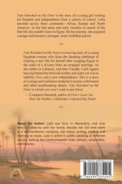 Fate Knocked on My Door is the story of a young girl looking for freedom and independence from a culture of control. Laila traveled across three continents-Africa, Europe and North America-in her late teens and early twenties in search of the free life she couldn't have in Egypt. On her journey, she acquired courage and became a stronger, more confident person.