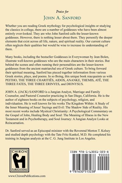 Whether you are reading Greek mythology for psychological insights or studying the classics in college, there are a number of goddesses who have been almost entirely over-looked. They are who John Sanford calls the lesser-known goddesses. However, there is nothing lesser about them. They personify the deeper elements that exist across all life, nature, and spiritual reality. Our current culture often neglects their qualities but would be wise to increase its understanding of them. Many books, including the bestseller Goddesses in Everywoman by Jean Bolen, illustrate well-known goddesses who are the main characters in their stories. But behind the scenes and often running their personalities are the lesser-known goddesses from the ancient matriarchal era of Greek culture. To bring forward their spiritual meaning, Sanford has pieced together information from various Greek stories, plays, and poems. In so Boing, this unique book reacquaints us with: PEITHO Goddess of gentle persuasion who wins love by consent rather than force. THE THREE CHARITIËS Goddesses of Beauty, good cheer, and abundance who inspire both charm and grace. AIDOS Goddess of modesty, self-respect, and shame whose sensitivities heighten the joy of love. ANANKE Goddess of necessity who brings the realization of what must be done. THEMIS Goddess of right order who shows the rule of lines, limits, and boundaries. ATË Goddess of folly, ruin, and sin who disregards all morals and consequences. THE THREE FATES Goddesses of the unchangeable, and fateful events whose irrationalities shape each person's life. THE THREE ERINYES Goddesses of fury who unleash the unceasing, relentless, and envious anger of feminine justice. DIONYSUS God and goddess of ecstasy who vitalizes life through divine energy and creative Inspiration. JOHN A. (JACK) SANFORD is a Jungian Analyst, Marriage and Family Counselor, and Pastoral Counselor practicing in San Diego, California. He is the author of eighteen books on the subjects of psychology, religion, and individuation. He is well known for his works The Kingdom Within: A Study of the Inner Meaning of Jesus' Sayings and Evil: The Shadow Side of Reality. His most recent works include Mystical Christianity: A Psychological Commentary on the Gospel of John, Healing Body and Soul: The Meaning of Illness in the New Testament and in Psychotherapy, and Soul Journey: A Jungian Analyst Looks at Reincarnation. Dr. Sanford served as an Episcopal minister with the Reverend Morton T. Kelsey and studied depth psychology with the Tate Fritz Kunkel, M.D. He completed his training in Jungian analysis at the C. G. Jung Institute in Los Angeles. He and his wife, Lynn, have two grown children, a grandson, and a number of cats and dogs.