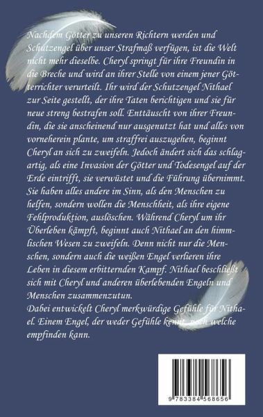 Götter waren einmal unsere gütigen Schöpfer, die sich mit der Zeit ins komplette Gegenteil wandelten. Auch wenn es mir sinnlos erschien, schickte ich gerade ein Stoßgebet zum Himmel, zu einem Gott, einer eben jenen, der gerade im Begriff war, mein Schicksal zu besiegeln. "Ab sofort, wird sie ihrem Schutzengel unterstellt, der dafür Sorge tragen wird, dass sie keine weiteren Vergehen begeht. Ansonsten unterliegt ihm die Bestrafung der Angeklagten." Mit einem weiteren lauten Klopfen auf den Holzklotz war das Urteil rechtskräftig und ich hatte keine Handhabe einer Verteidigung. Das Recht wurde mir bereits verweigert, als ich den Gerichtssaal betrat. Götterrichter duldeten keine Rechtfertigung, bei ihnen war ein Vergehen absolut.Nachdem Götter zu unseren Richtern werden und Schutzengel über unser Strafmaß verfügen, ist die Welt nicht mehr dieselbe. Cheryl springt für ihre Freundin in die Breche und wird an ihrer Stelle von einem jener Götterrichter verurteilt. Ihr wird der Schutzengel Nithael zur Seite gestellt, der ihre Taten berichtigen und sie für neue streng bestrafen soll. Enttäuscht von ihrer Freundin, die sie anscheinend nur ausgenutzt hat und alles von vorneherein plante, um straffrei auszugehen, beginnt Cheryl an sich zu zweifeln. Jedoch ändert sich das schlagartig, als eine Invasion der Götter und Todesengel auf der Erde eintrifft, sie verwüstet und die Führung übernimmt. Sie haben alles andere im Sinn, als den Menschen zu helfen, sondern wollen die Menschheit, als ihre eigene Fehlproduktion, auslöschen. Während Cheryl um ihr Überleben kämpft, beginnt auch Nithael an den himmlischen Wesen zu zweifeln. Denn nicht nur die Menschen, sondern auch die weißen Engel verlieren ihre Leben in diesem erbitternden Kampf. Nithael beschließt sich mit Cheryl und anderen überlebenden Engeln und Menschen zusammenzutun.Dabei entwickelt Cheryl merkwürdige Gefühle für Nithael. Einem Engel, der weder Gefühle kennt, noch welche empfinden kann.