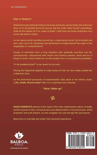 Shattered by the betrayal of those she loves and trusts unreservedly, this is the true story of an enchanted personal journey that the writer fi nds herself undertaking, while all she wishes for is to "wake up dead". Little does she know what these very words will come to mean. As her natural world crumbles around her, a supernatural world, full of wonder and awe, open up to her, disclosing new dimensions of reality beyond the realm of her imagination or comprehension. Scraps of memories from a long forgotten past gradually resurface into her consciousness. Interspersed with visions and ominous dreams, these tell her of things to come, which shake her up and awaken her to unsuspected possibilities. "Is life predetermined?" is her quest for the truth. Piecing the fragments together to make sense of it all, her new reality unfolds like a detective story. As the alchemical processes of transformation take place in her interior world, "Life, Death, Resurrection" take on a surprising new meaning: "Nano, Wake up!"