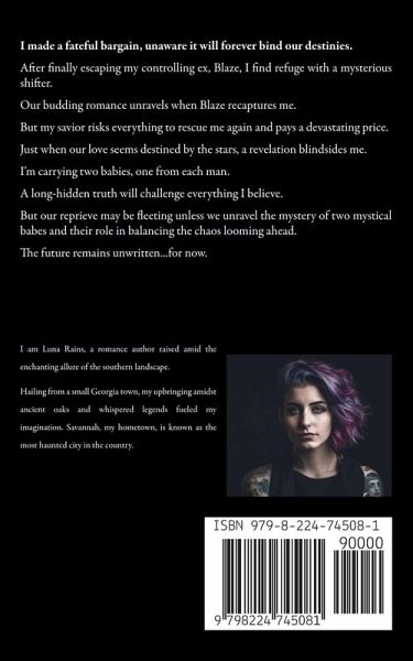 I made a fateful bargain, unaware it will forever bind our destinies. After finally escaping my controlling ex, Blaze, I find refuge with a mysterious shifter. Our budding romance unravels when Blaze recaptures me. But my savior risks everything to rescue me again and pays a devastating price. Just when our love seems destined by the stars, a revelation blindsides me. I'm carrying two babies, one from each man. A long-hidden truth will challenge everything I believe. But our reprieve may be fleeting unless we unravel the mystery of two mystical babes and their role in balancing the chaos looming ahead. The future remains unwritten...for now.