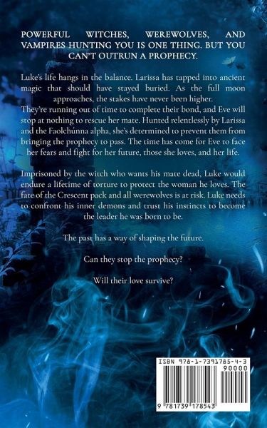"If The Vampire Diaries and Teen Wolf had an Irish baby, it would be The Hybrid Wolf Series." Powerful witches, werewolves, and vampires hunting you is one thing. But you can't outrun a prophecy. Luke's life hangs in the balance. Larissa has tapped into ancient magic that should have stayed buried. As the full moon approaches, the stakes have never been higher. They're running out of time to complete their bond, and Eve will stop at nothing to rescue her mate. Hunted relentlessly by Larissa and the Faolchúnna alpha, she's determined to prevent them from bringing the prophecy to pass. The time…mehr