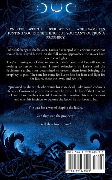 "If The Vampire Diaries and Teen Wolf had an Irish baby, it would be The Hybrid Wolf Series." Powerful witches, werewolves, and vampires hunting you is one thing. But you can't outrun a prophecy. Luke's life hangs in the balance. Larissa has tapped into ancient magic that should have stayed buried. As the full moon approaches, the stakes have never been higher. They're running out of time to complete their bond, and Eve will stop at nothing to rescue her mate. Hunted relentlessly by Larissa and the Faolchúnna alpha, she's determined to prevent them from bringing the prophecy to pass. The time…mehr