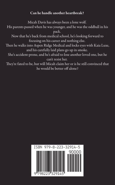 Can he handle another heartbreak? Micah Davis has always been a lone wolf. His parents passed when he was younger, and he was the oddball in his pack. Now that he's back from medical school, he's looking forward to focusing on his career and nothing else. Then he walks into Aspen Ridge Medical and locks eyes with Kaia Luxe, and his carefully laid plans go up in smoke. She's accident-prone, and he's afraid to lose another loved one, but he can't resist her. They're fated to be, but will Micah claim her or is he still convinced that he would be better off alone?