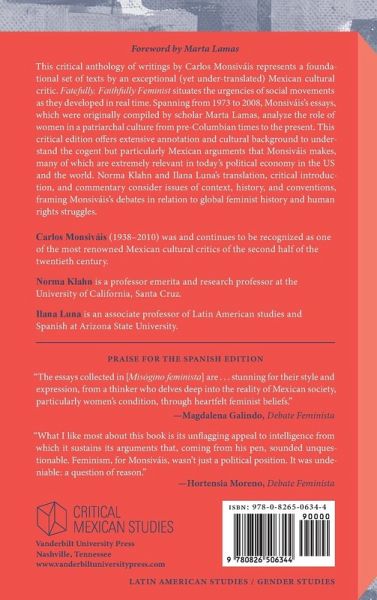This critical anthology of writings by Carlos Monsiväis represents a foundational set of texts by an exceptional (yet under-translated) Mexican cultural critic. Fatefully, Faithfully Feminist situates the urgencies of social movements as they developed in real time. Spanning from 1973 to 2008, Monsiváis's essays, which were originally compiled by scholar Marta Lamas, analyze the role of women in a patriarchal culture from pre-Columbian times to the present. This critical edition offers extensive annotation and cultural background to understand the cogent, but particularly Mexican arguments that Monsiváis makes, many of which are extremely relevant in today's political economy in the US and the world. Norma Klahn and Ilana Luna's translation, critical introduction, and commentary consider issues of context, history, and conventions, framing Monsiváis's debates in relation to global feminist history and human rights struggles.