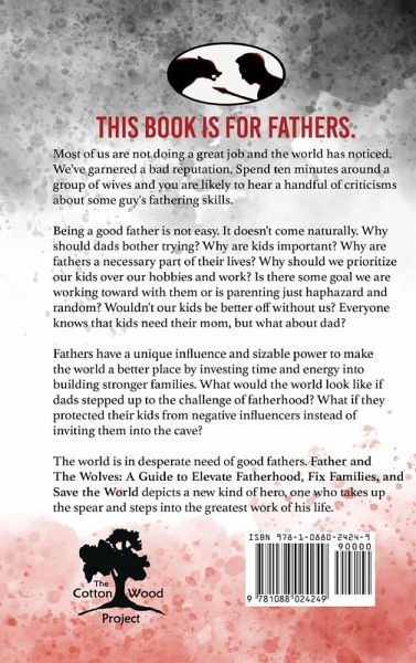 This book is for fathers. Most of us are not doing a great job and the world has noticed. We've garnered a bad reputation. Spend ten minutes around a group of wives and you are likely to hear a handful of criticisms about some guy's fathering skills. Being a good father is not easy. It doesn't come naturally. Why should dads bother trying? Why are kids important? Why are fathers a necessary part of their lives? Why should we prioritize our kids over our hobbies and work? Is there some goal we are working toward with them or is parenting just haphazard and random? Wouldn't our kids be better off without us? Everyone knows that kids need their mom, but what about dad? Fathers have a unique influence and sizable power to make the world a better place by investing time and energy into building stronger families. What would the world look like if dads stepped up to the challenge of fatherhood? What if they protected their kids from negative influencers instead of inviting them into the cave? The world is in desperate need of good fathers. Father and The Wolves: A Guide to Elevate Fatherhood, Fix Families, and Save the World depicts a new kind of hero, one who takes up the spear and steps into the greatest work of his life.