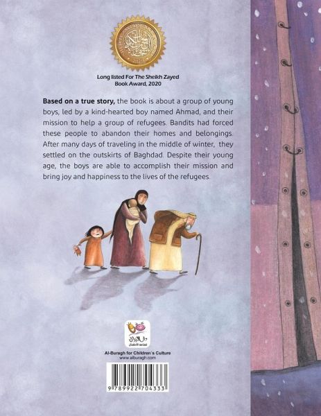 Based on a true story, this book is about a group of young boys, led by a kind hearted boy named Ahmad, and their mission to help a group of refugees. Bandits had forced these people to abandon their homes and belongings. After many days of traveling in the middle of winter, they settled in the outskirts of Baghdad. Despite their young age, the boys are able to accomplish their mission and bring joy and happiness to the lives of the refugees. Long listed for the Sheikh Zayed Book Award, 2020.
