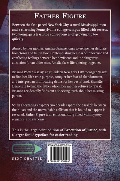 Between the fast-paced New York City, a rural Mississippi town and a charming Pennsylvania college campus filled with secrets, two young girls learn the consequences of growing up too quickly. Abused by her mother, Amalia Graeme longs to escape her desolate hometown and fall in love. Contemplating her loss of innocence and conflicting feelings between her boyfriend and the dangerous attraction for an older man, Amalia faces life-altering tragedies. Brianna Porter, a sassy, ¿¿angst-ridden New York City teenager, yearns to find her life's true purpose, conquer her fear of abandonment, and interpret an intimidating desire for her best friend, Shanelle. Desperate to find the father whom her mother refuses to reveal, Brianna accidentally finds out a shocking truth about her missing parent. Set in alternating chapters two decades apart, the parallels between their lives and the unavoidable collision that is bound to happen is revealed. Father Figure is an emotional story filled with mystery, romance, and suspense. This is the large print edition of Father Figure, with a larger font / typeface for easier reading.¿