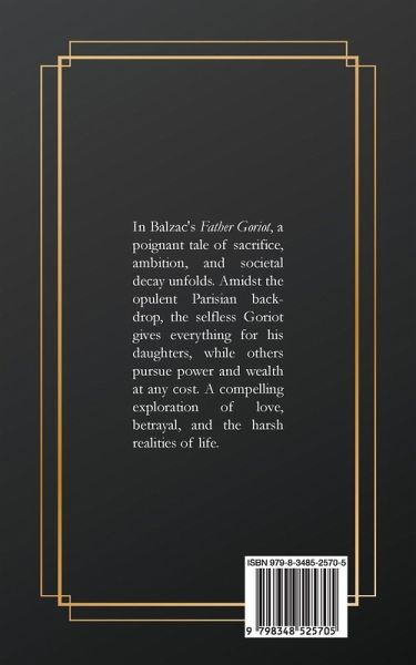 In Balzac's Father Goriot, a poignant tale of sacrifice, ambition, and societal decay unfolds. Amidst the opulent Parisian backdrop, the selfless Goriot gives everything for his daughters, while others pursue power and wealth at any cost. A compelling exploration of love, betrayal, and the harsh realities of life.