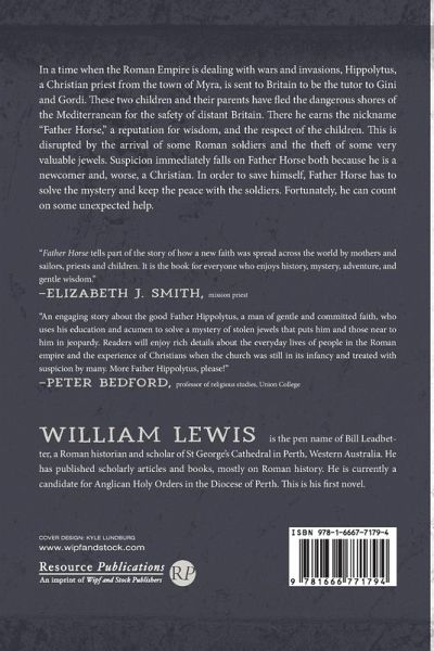 In a time when the Roman Empire is dealing with wars and invasions, Hippolytus, a Christian priest from the town of Myra, is sent to Britain to be the tutor to Gini and Gordi. These two children and their parents have fled the dangerous shores of the Mediterranean for the safety of distant Britain. There he earns the nickname ""Father Horse,"" a reputation for wisdom, and the respect of the children. This is disrupted by the arrival of some Roman soldiers and the theft of some very valuable jewels. Suspicion immediately falls on Father Horse both because he is a newcomer and, worse, a Christian. In order to save himself, Father Horse has to solve the mystery and keep the peace with the soldiers. Fortunately, he can count on some unexpected help.