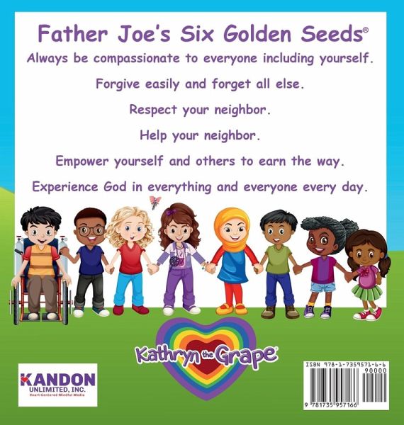 Father Joe's Six Golden Seeds is a unifying story providing six principles for experiencing goodness daily. Through vibrant illustrations and rhythmic storytelling, Kathryn the Grape shares how goodness grows from being compassionate, forgiving, respectful, helpful, and empowering while experiencing God in everyone and everything. All proceeds from this book support children and families in need. Kathryn the Grape Songbooks Kathryn the Grape Songbooks are learning tools for children. Since speech and language processing happens in different hemispheres of the brain, when a child sings along to a song while seeing the words they are singing, they activate both areas simultaneously. This dual activation assists with comprehension, memory retention, sight word recognition, phonemic awareness, and overall cognitive development. Kathryn the Grape Songbooks support diverse learning styles and abilities with entertaining and educational songs, illustrated books, and engaging videos. Father Joe - A Humble Hero This book was inspired by Father Joe Carroll's example of goodness. Father Joe (1941-2021) helped millions of unhoused neighbors in need have access to meals, housing, education, job training, medical care, and more. Author Kathryn Cloward created the six golden seeds concept from life lessons she gained from Father Joe during her over 150 hours of recorded conversations with him while gathering information for writing his memoir, Father Joe: Life Stories of a Hustler Priest. "Father Joe's Six Golden Seeds" shares the true story of how her signature purple outfit came from the St. Vincent de Paul Thrift Store in downtown San Diego, California when Kathryn's mom worked alongside Father Joe in the early years of his work with unhoused neighbors in need. About Kathryn the Grape-Purple-Powered Positivity Kathryn Cloward is Kathryn the Grape. Bringing her childhood nickname to life as an illustrated character was originally her mom's idea; Kathryn was inspired to create heart-centered stories and songs to share positive messages of love, compassion, understanding, and inclusivity. By sharing with children, Kathryn knows she is also sharing with adults. A prolific storyteller of simplification, she is passionate and purposeful in her desire to provide children, families, caregivers, and educators with simple and relatable tools for navigating life. Dressed in the replica of her favorite purple outfit from childhood, Kathryn the Grape is engaging for young children as an illustrated character on the pages of their books and a real person they see on videos and meet in person at concerts and events.