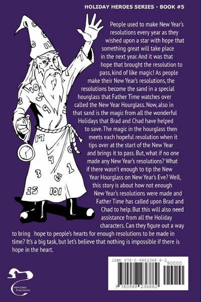 People used to make New Year's resolutions every year as they wished upon a star with hope that something great will take place in the next year. And it was that hope that brought the resolution to pass, kind of like magic! As people make their New Year's resolutions, the resolutions become the sand in a special hourglass that Father Time watches over called the New Year Hourglass. Now, also in that sand is the magic from all the wonderful Holidays that Brad and Chad have helped to save. The magic in the hourglass then meets each hopeful resolution when it tips over at the start of the New Year and brings it to pass. But, what if no one made any New Year's resolutions? What if there wasn't enough to tip the New Year Hourglass on New Year's Eve? Well, this story is about how not enough New Year's resolutions were made and Father Time has called upon Brad and Chad to help. But this will also need assistance from all the Holiday characters. Let's believe that nothing is impossible if there is hope in the heart.