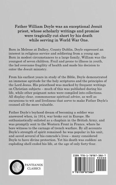 Father William Doyle was an exceptional Jesuit priest, whose scholarly writings and promise were tragically cut short by his death while serving in World War One. Born in Melrose at Dalkey, County Dublin, Doyle expressed an interest in religious service and soldiering from a young age. Born in modest circumstances to a large family, William was the youngest of seven children. Frail and prone to illness in youth, the lad overcame fragility of health and made his decision to enter the Jesuit ministry. From his earliest years in study of the Bible, Doyle demonstrated an immense aptitude for the holy scriptures and the principles of the Lord Jesus. His priesthood was marked by frequent writings on Christian subjects - much of this was published during his life, while other poignant notes were compiled into collections. All display clear, commonsense spiritual advice, as well as excursions to wit and liveliness that serve to make Father Doyle's counsel all the more valuable. Father Doyle's boyhood dream of becoming a soldier was answered when, in 1914, war broke out in Europe. He enthusiastically enlisted as a chaplain in the British Army, and was promptly sent to the Western Front in France, where he bore witness to the carnage of trench warfare. By all accounts Doyle's strength of spirit remained; he was popular in his unit, and saved several of his comrade's lives - many considered Doyle to have divine protection. Yet his death was sudden; an exploding shell ended his life, at the age of only forty-four.