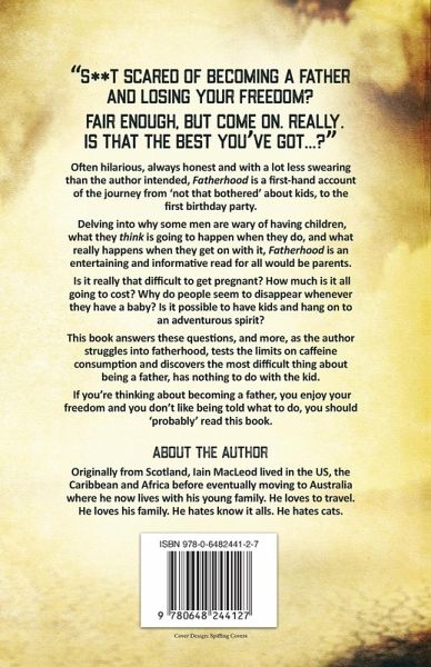 "Sh** scared of becoming a father and losing your freedom? Fair enough, but come on. Really. Is that the best you've got…?" Often hilarious, always honest and with a lot less swearing than the author intended, Fatherhood is a first-hand account of the journey from 'not that bothered' about kids, to the first birthday party. Delving into why some men are wary of having children, what they think is going to happen when they do, and what really happens when they get on with it, Fatherhood is an entertaining and informative read for all would be parents. - Is it really that difficult to get pregnant? - How much is it all going to cost? - Why do people seem to disappear whenever they have a baby? - Is it possible to have kids and hang on to an adventurous spirit? This book answers these questions, and more, as the author struggles into fatherhood, tests the limits on caffeine consumption and discovers the most difficult thing about being a father, has nothing to do with the kid. If you're thinking about becoming a father, you enjoy your freedom and you don't like being told what to do, you should 'probably' read this book.