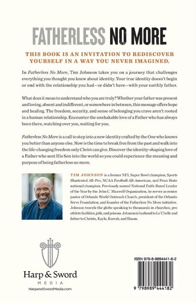 This book is an invitation to rediscover yourself in a way you never imagined. In Fatherless No More, Tim Johnson takes you on a journey that challenges everything you thought you knew about identity. Your true identity doesn't begin or end with the relationship you had-or didn't have-with your earthly father. What does it mean to understand who you are truly? Whether your father was present and loving, absent and indifferent, or somewhere in between, this message offers hope and healing. The freedom, security, and sense of belonging you crave aren't rooted in a human relationship. Encounter the unshakable love of a Father who has always been there, watching over you, waiting for you. Fatherless No More is a call to step into a new identity crafted by the One who knows you better than anyone else. Now is the time to break free from the past and walk into the life-changing freedom only Christ can give. Discover the identity-shaping love of a Father who sent His Son into the world so you could experience the meaning and purpose of being fatherless no more.