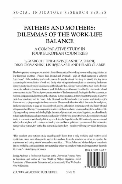 "This excellent cross-national study unambiguously shows that a truly workable and positive social equilibrium needs more than public support for mothers. It needs, somehow or other, to equalise the employment and caring roles of men and women alike . . . What Fathers and Mothers helps us to realise is that no workable social equilibrium can materialise unless we somehow begin to also reconstruct the male life course."