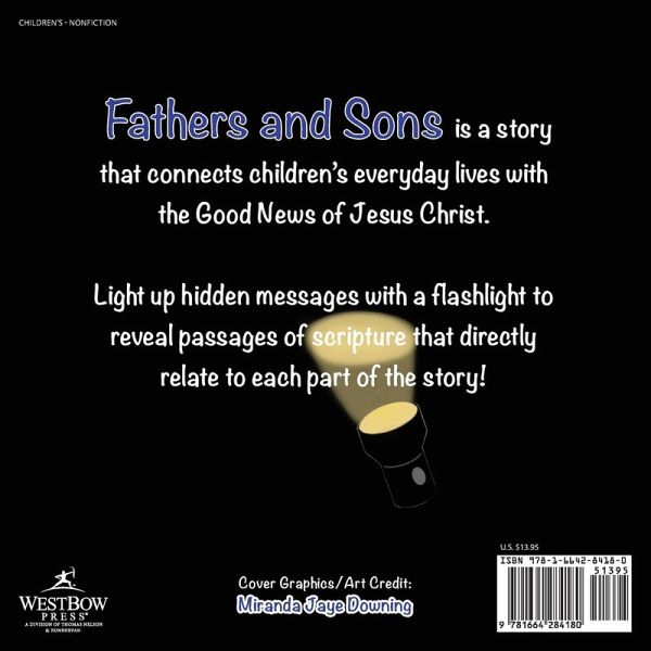 Fathers and Sons is a story that connects children's everyday lives with the Good News of Jesus Christ. Light up hidden messages with a flashlight to reveal passages of scripture that directly relate to each part of the story!