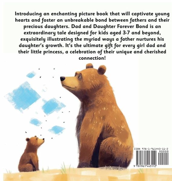 The perfect Father's Day gift of love or sweet keepsake for a daughter of any age to show why Dad is so amazing! This new picture book for kids ages 3-7 and beyond is a touching story showing all the ways a father will help his daughter grow. This is the gift for every girl dad and little girl to celebrate their special bond! Featuring charming animal illustrations and heartwarming rhymes about the moments fathers and daughters share, Dad and Daughter Forever Bond is the perfect story to connect father and child together. Introducing an enchanting picture book that will captivate young hearts and foster an unbreakable bond between fathers and their precious daughters. Dad and Daughter Forever Bond is an extraordinary tale designed for kids aged 3-7 and beyond, exquisitely illustrating the myriad ways a father nurtures his daughter's growth. It's the ultimate gift for every girl dad and their little princess, a celebration of their unique and cherished connection! Immerse yourself in a world of delightful animal characters, brought to life through captivating illustrations that will ignite the imagination. Told in heartwarming rhymes, this story beautifully captures the tender and magical moments shared between fathers and daughters. From whispered secrets to playful adventures, each page of this enchanting journey paints a vivid picture of an everlasting bond that will leave readers breathless. Prepare to embark on an unforgettable literary voyage, where the power of storytelling intertwines with the profound love between a dad and his little girl. Dad and Daughter Forever Bond is not just a book-it's a heartfelt experience, carefully crafted to foster connection, understanding, and immense joy. Let the tender words and whimsical artistry bridge the gap between generations and create everlasting memories that will be treasured for a lifetime. Grab a copy of Dad and Daughter Forever Bond today and embark on an extraordinary journey that will leave your heart overflowing with love and gratitude. Don't miss this golden opportunity to nurture the unbreakable bond between fathers and daughters. Let the pages of this enchanting tale bring you closer, enveloping you in a world of warmth, affection, and limitless possibilities.