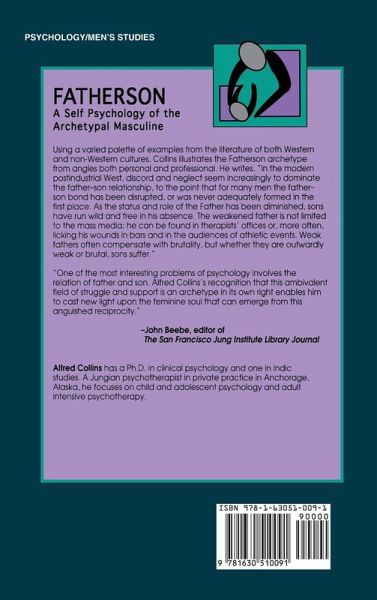 Using a varied palate of examples from the literature of both Western and non-Western cultures, Collins illustrates the Fatherson archetype from angles both personal and professional. He writes, "In the modern postindustrial West, discord and neglect seem increasingly to dominate the father-son relationship, to the point that for many men the father-son bond has been disrupted, or was never adequately formed in the first place. As the status and role of the Father has been diminished, sons have run wild and free in his absence. The weakened father is not limited to the mass media; he can be found in therapists' offices or, more often, licking his wounds in bars and in the audiences of athletic events. Weak fathers often compensate with brutality, but whether they are outwardly weak or brutal, sons suffer." "One of the most interesting problems of psychology involves the relation of father and son. Alfred Collins's recognition that this ambivalent field of struggle and support is an archetype in its own right enables him to cast new light upon the feminine soul that can emerge from this anguished reciprocity. Table of Contents The Archetypes' Contested Self Fatherson Mutuality: Kohut and the Selfobject Psychoanalytic Fathers and Their Sons Cross-Bodying: Anima and Fatherson as Complementary Archetypes of Consciousness The Failed Father: Old Reprobates and Their Sons Fatherson and the King De/Centering and Cultural Cannibalism Initiating the Father Through Death Toward an Archetypal Self Psychology Alfred Collins has a Ph.D. in clinical psychology and one in lndic studies. A Jungian psychotherapist In private practice in Anchorage, Alaska, he focuses on child and adolescent psychology and adult intensive psychotherapy.