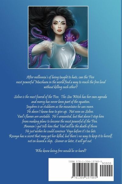 After millennias of being taught to hate, can the Five most powerful Macshara in the world find a way to reach the free land without killing each other? Soline is the most feared of the Five. The Sea Witch has her own agenda and mercy has never been part of the equation. Jaydren is as stubborn as the mountains he can move. He doesn't know how to give up. Not even on Soline. Vael's flames are unstable. He's unwanted, but that doesn't stop him from making plans to become the most powerful of the Five. Ammon's gut tells him that Vael will be the death of them He just wishes he could convince Veya before it's too late. Revaya has a secret that may get her killed, but there's no way to keep it to herself, not on board a ship. Sooner or later, it will get out. Who knew being free would be so hard?